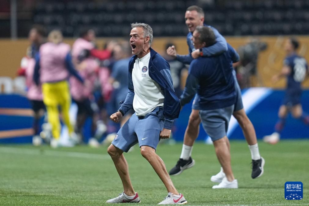 7月5日,巴黎圣日耳曼隊主教練恩里克慶祝球隊進球。