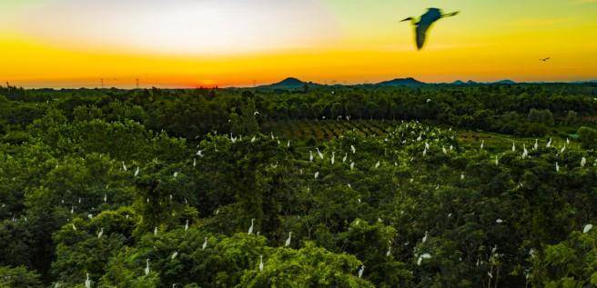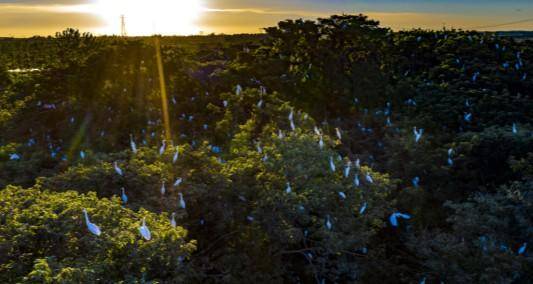 湖北日報客戶端訊(通訊員雷平)7月3日清晨,旭日東升,嘉魚珍湖國家濕地公園樹林里,萬只白鷺齊鳴,陸續離巢覓食,仿佛跳起了歡樂的圓舞曲。傍晚時分,夕陽下白鷺翩躚而歸,或是急促歸巢,或是翱翔盤旋,舞姿翩翩,悠閑自得,美不勝收。