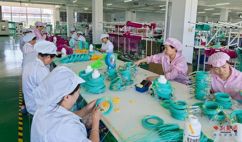 荊楚網(湖北日報網)訊(通訊員 吳滕鈺)“產能滿負荷,夜間2班倒,機器24小時不停……”7月3日,位于英山一里沙工業園區的黃岡市源國科技有限公司,總經理柯君意面對開年以來產銷兩旺的勢頭欣喜萬分:3500平方米的二期生產車間內機輪飛轉、一派忙碌,光纖制作、角度研磨、測量切割、檢驗檢測等17條生產線火力全開,57道工站276名員工埋頭趕工。