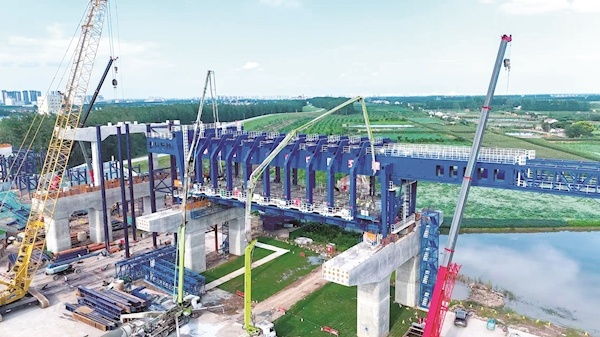 楚天都市報極目新聞訊(記者呂銳 通訊員金波 朱秀建)7月2日,由湖北交投集團投資、中交二航局承建的李埠長江公鐵大橋首跨鐵路現澆箱梁順利澆筑完成,為項目全線施工按下“加速鍵”。