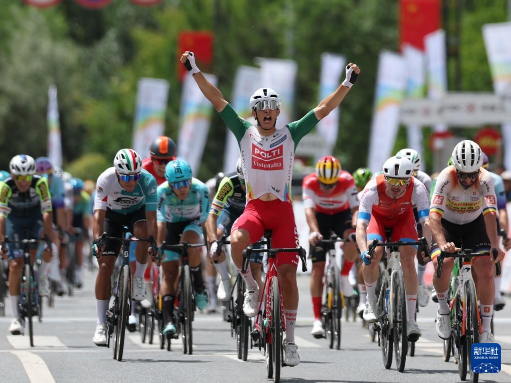 7月6日,意大利波蒂—探索馬耳他車隊車手佩納維爾在比賽中沖刺。新華社記者 齊芷玥 攝