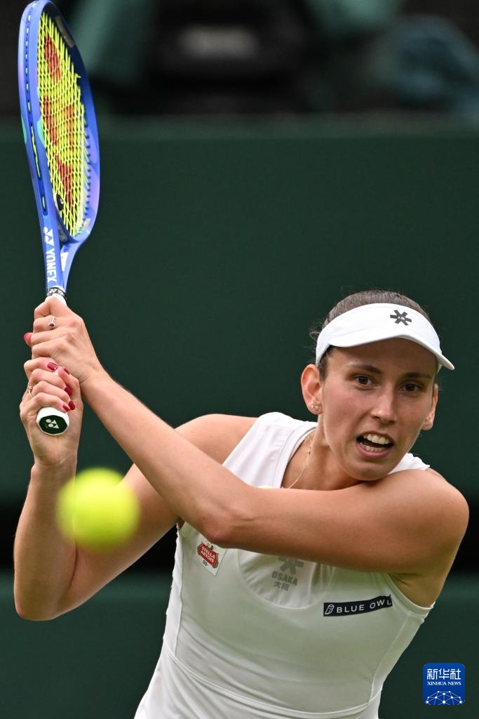 7月6日,梅爾滕斯在比賽中回球。新華社記者 趙丁喆 攝