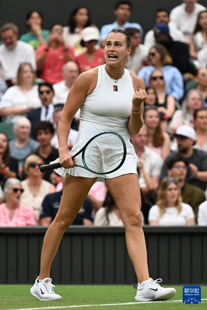 7月6日,薩巴倫卡在比賽后慶祝。新華社記者 趙丁喆 攝