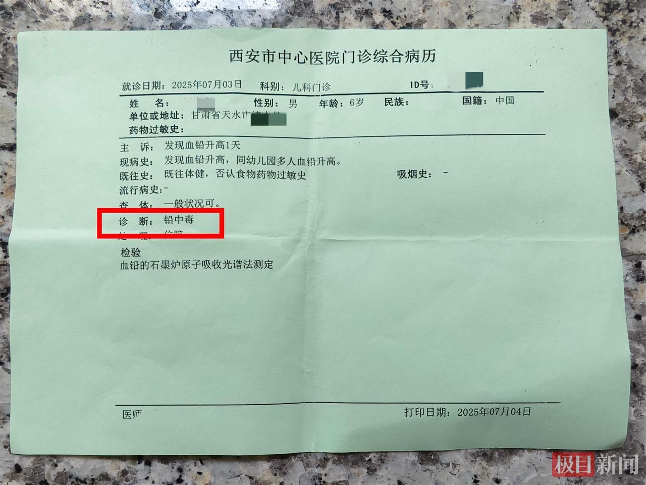 近日,甘肅天水麥積區(qū)褐石培心幼兒園違規(guī)使用添加劑致幼兒血鉛異常,持續(xù)引發(fā)社會(huì)關(guān)注。天水集中血鉛檢測(cè)結(jié)果遲遲未出,家長(zhǎng)陸續(xù)帶孩子去西安市中心醫(yī)院診療。此前,天水方面召集幼兒家長(zhǎng)開(kāi)過(guò)一次通報(bào)會(huì),會(huì)上透露,抽檢的三色棗發(fā)糕和玉米腸卷樣本添加劑超標(biāo)。7月6日,極目新聞?dòng)浾卟杉嗽谖靼彩兄行尼t(yī)院血檢的74名幼兒血鉛檢驗(yàn)報(bào)告單,其中70名幼兒血鉛超標(biāo)、4名幼兒血鉛正常。