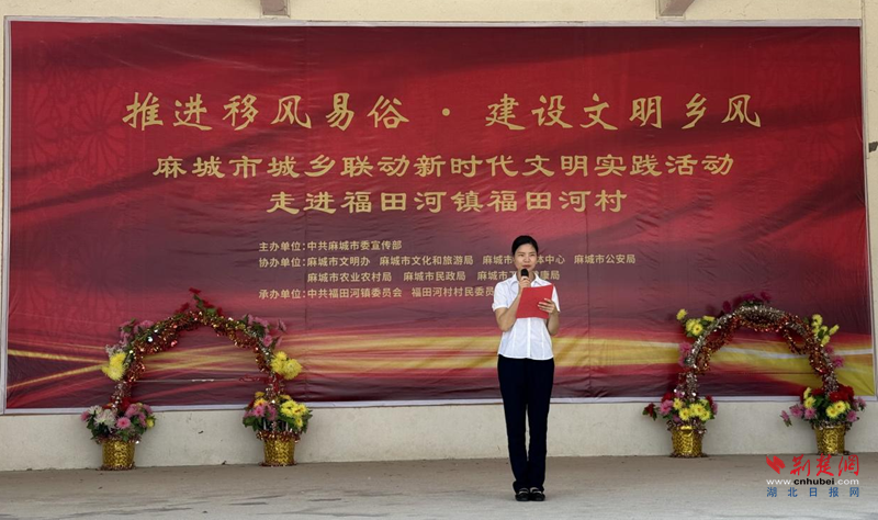 荊楚網(wǎng)(湖北日?qǐng)?bào)網(wǎng))訊(通訊員王睿、羅干、彭兆杰)7月3日上午,“推動(dòng)移風(fēng)易俗 建設(shè)文明鄉(xiāng)風(fēng)”麻城市城鄉(xiāng)聯(lián)動(dòng)新時(shí)代文明實(shí)踐活動(dòng)在福田河鎮(zhèn)菊鄉(xiāng)文化大舞臺(tái)舉行。活動(dòng)通過(guò)理論宣講、文藝演出、政策解讀等多種形式,重點(diǎn)聚焦文明婚俗等移風(fēng)易俗內(nèi)容,以多元形式引導(dǎo)村民破陳規(guī)、除陋習(xí),傳遞文明理念。
