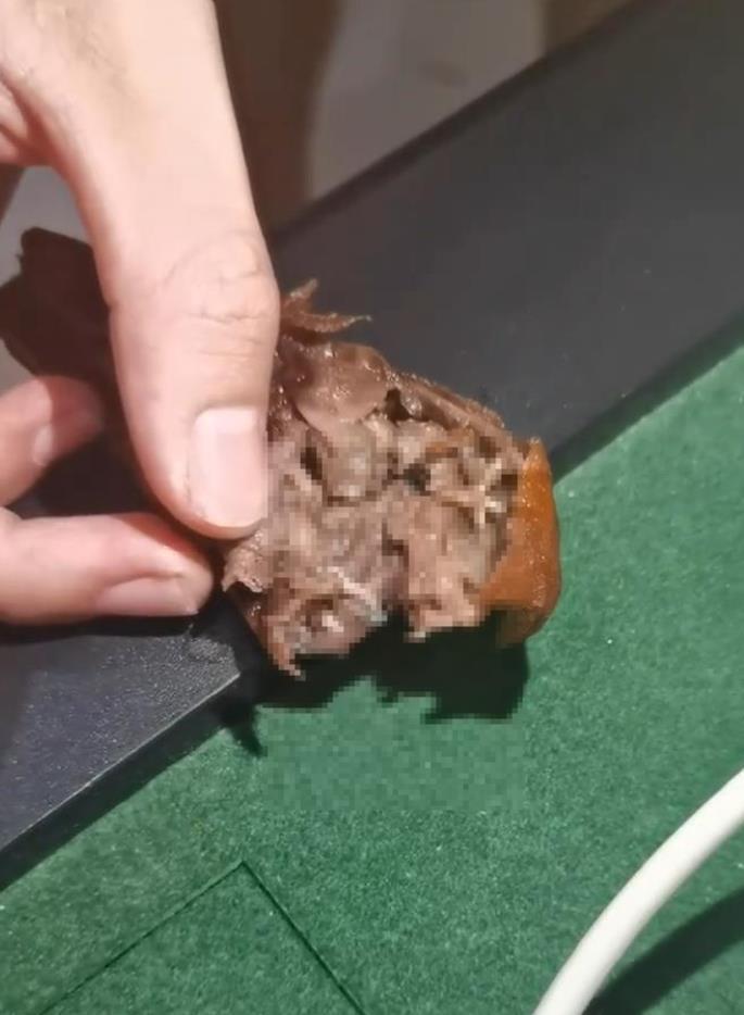 網(wǎng)友發(fā)布的視頻中,掰開鴨頭,明顯看到有數(shù)條活蛆蠕動(dòng)。視頻發(fā)布者表示,他是一名在讀大學(xué)生,他從當(dāng)?shù)匦拚芬患饮u味餐館購(gòu)買了鴨頭后,7月6日凌晨,在鴨頭中吃出了活蛆,之后餐館提供的補(bǔ)償方案為賠償50元。極目新聞?dòng)浾咚叫旁摼W(wǎng)友,未獲回應(yīng)。