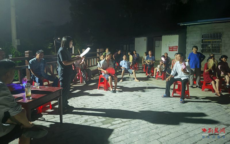 荊楚網(湖北日報網)訊(通訊員翟娟、石磊)夏夜星空下,蟬鳴蛙聲里。7月2日晚,在黃岡市人大常委會駐文家坊村第一書記楊仕英的組織下,羅田法院匡河人民法庭聯合匡河司法所、匡河派出所走進文家坊村,與村民們圍坐一堂,搭建起“星空下的法治課堂”,以接地氣的方式將法律知識送到群眾心坎里。