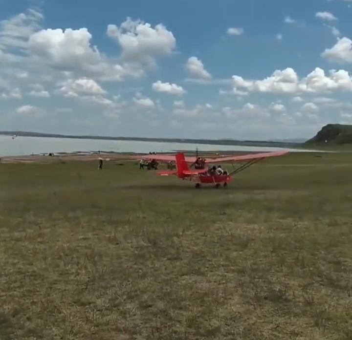 根據網友提供的視頻,一架固定翼觀光飛機上乘坐了3個人,飛機在草地上滑行后起飛,但離開地面沒多久突然墜地。有網友稱,事發7月6日,地點為內蒙古錫林郭勒盟太仆寺旗的牛奶湖畔。