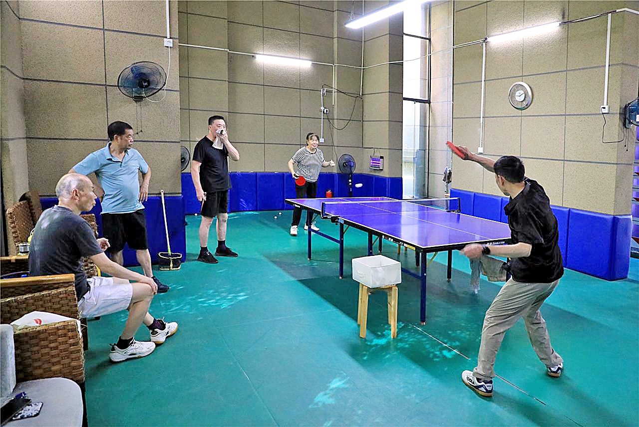 小區(qū)居民在架空層打乒乓球 肖敏攝