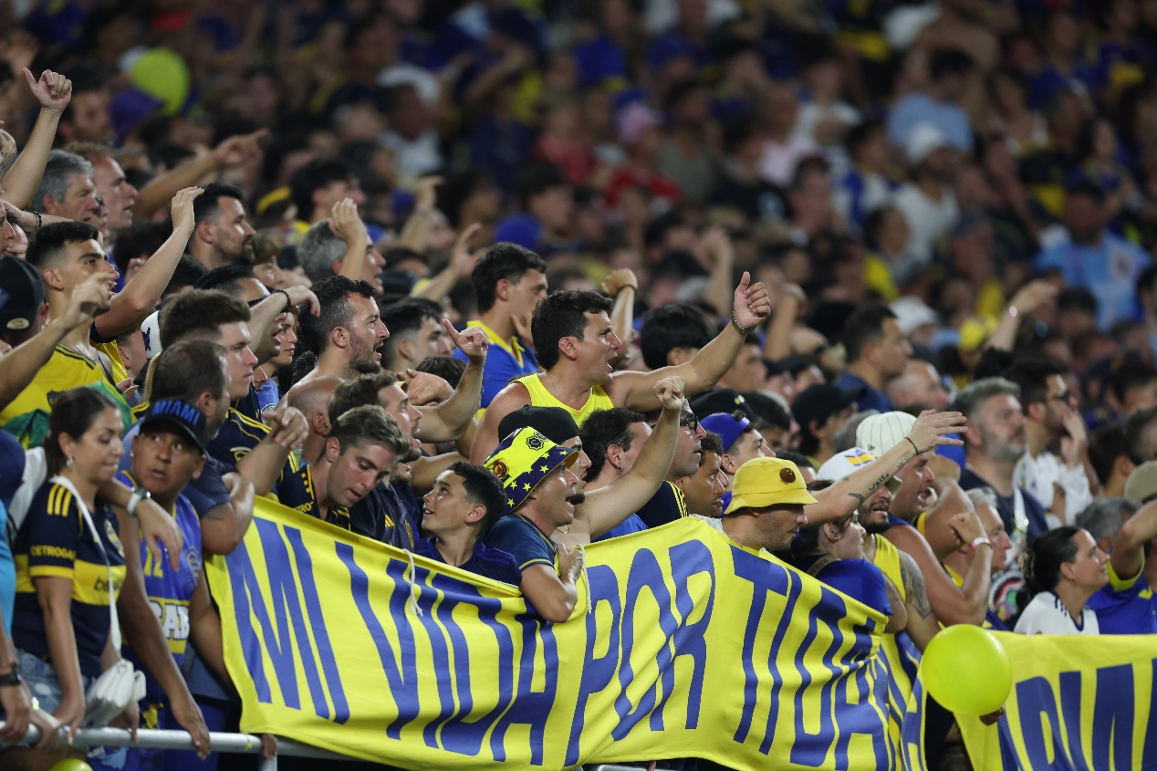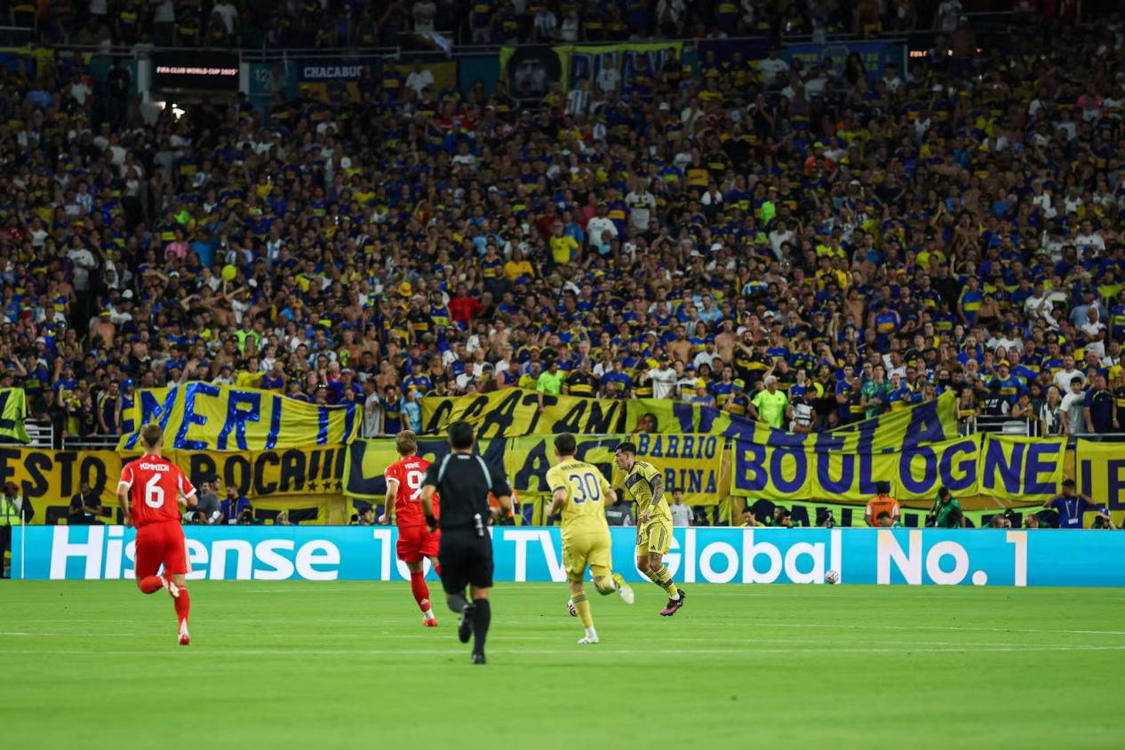 小組賽第二輪比賽中,來自南美的博卡青年在硬石體育場同樣對陣拜仁,整個球場被一片藍黃席卷。博卡青年的球迷全場幾乎沒有停歇地揮舞著旗子、吶喊著。