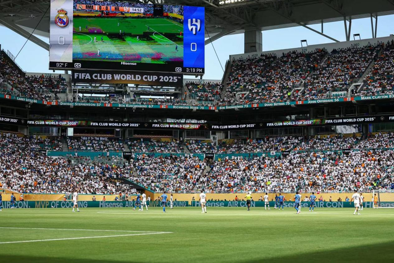 當世俱杯的煙火照亮不同膚色的臉龐,有一個細節可能被很多人忽略:無論是弗拉門戈球迷在停車場展開的巨幅隊旗,還是馬梅洛迪日落隊球員進球后的怒吼特寫,這些珍貴的畫面得以傳向世界各個角落,都離不開場邊持續刷屏的藍色“海信(Hisense)”標志背后的技術支持。