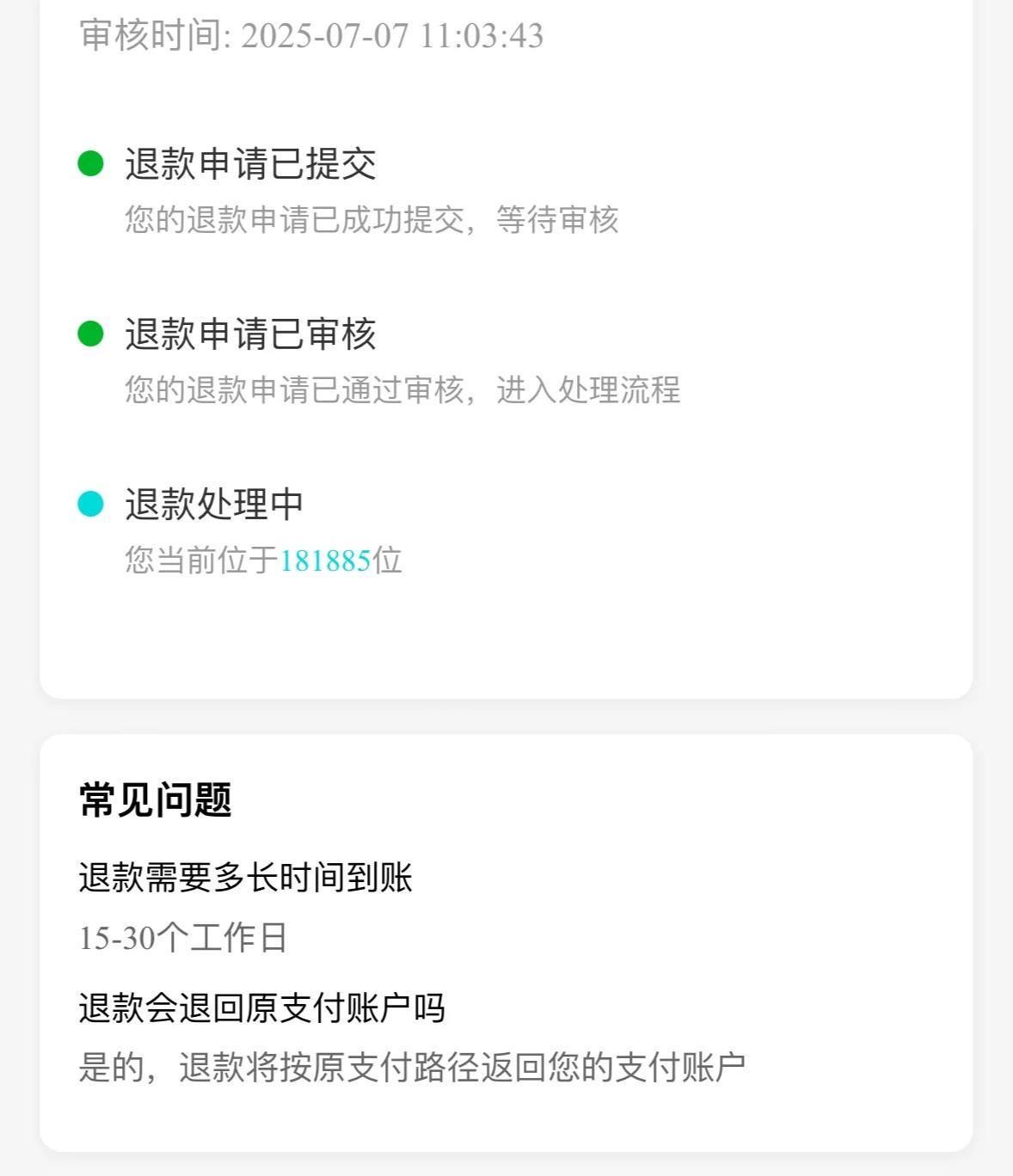 隨后,記者收到羅馬仕客服電話,客服表示是有人工客服的,可通過訂單與客服溝通,后續有專人處理。對于有消費者退款進度排到了十幾萬位的問題,她表示,確實有很多人需要退款,退款一般是15-30個工作日,“我們審核完成后都是大批量的轉賬。”