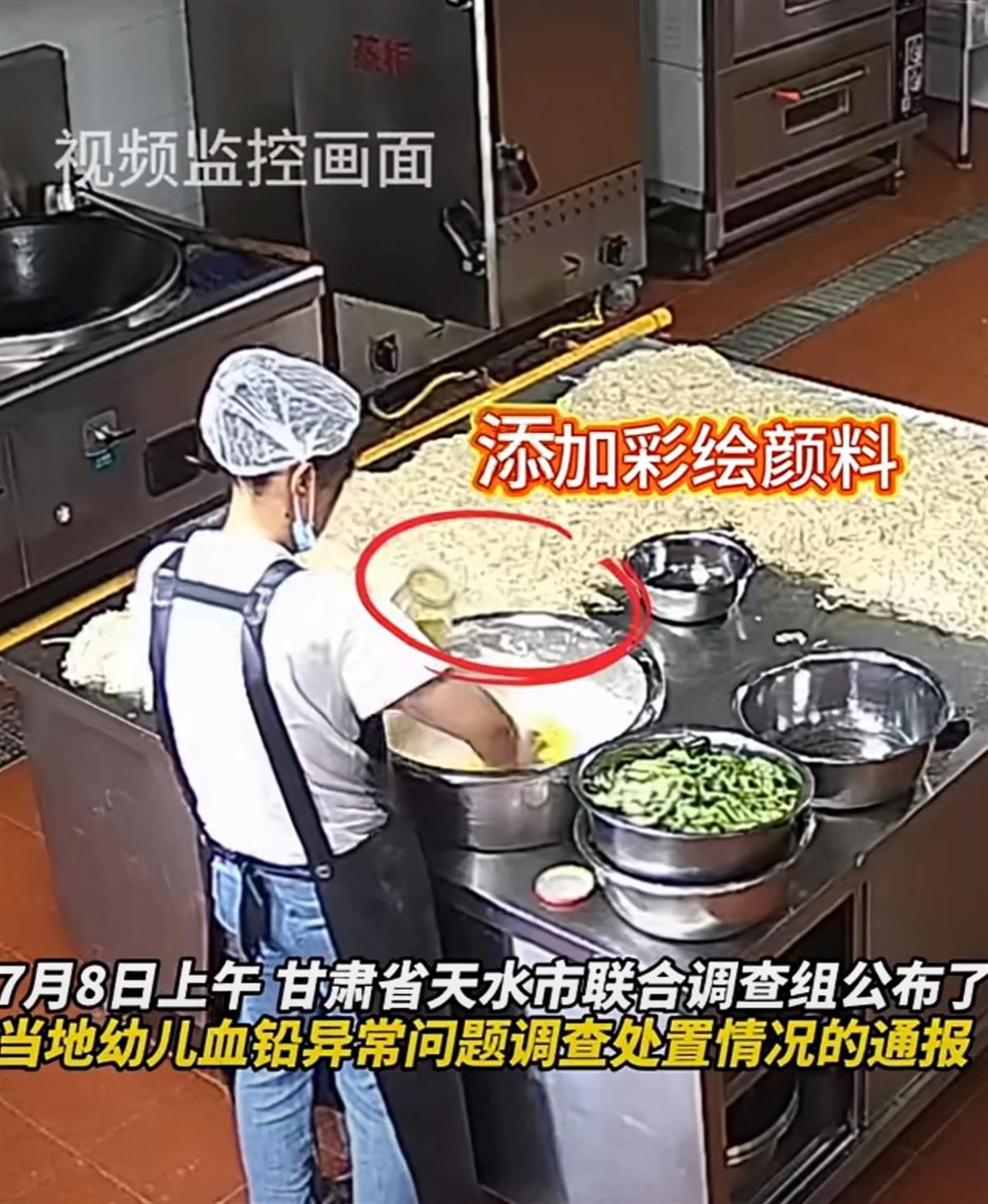 7月8日,甘肅天水市聯(lián)合調(diào)查組發(fā)布《關(guān)于天水市麥積區(qū)培心幼兒園幼兒血鉛異常問題調(diào)查處置情況的通報》。經(jīng)查,幼兒園園長朱某琳、投資人李某芳同意該園后廚人員通過網(wǎng)絡(luò)平臺購買彩繪顏料,稀釋后用于部分食品制作。7月3日凌晨,公安部門將其藏匿的剩余顏料查獲。經(jīng)檢驗,查獲顏料含鉛(包裝明確標識不可食用)。