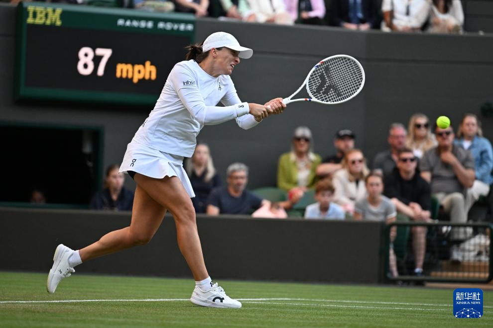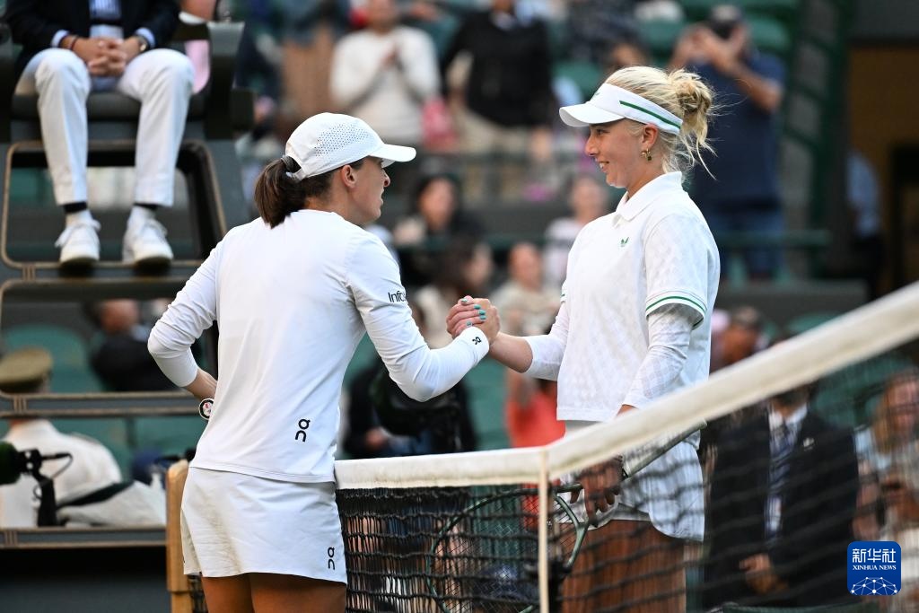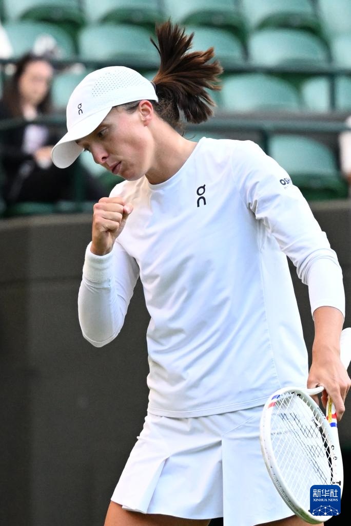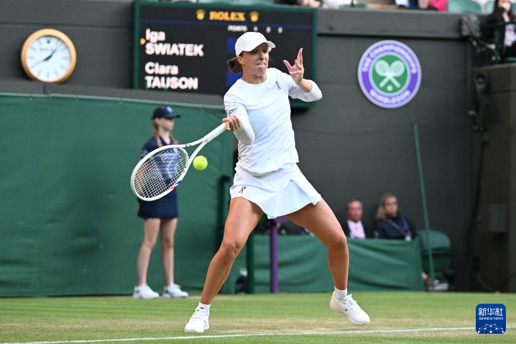 當日,在英國倫敦舉行的2025溫布爾登網球公開賽女子單打第四輪比賽中,波蘭選手斯維亞特克2比0戰勝丹麥選手陶森,晉級八強。