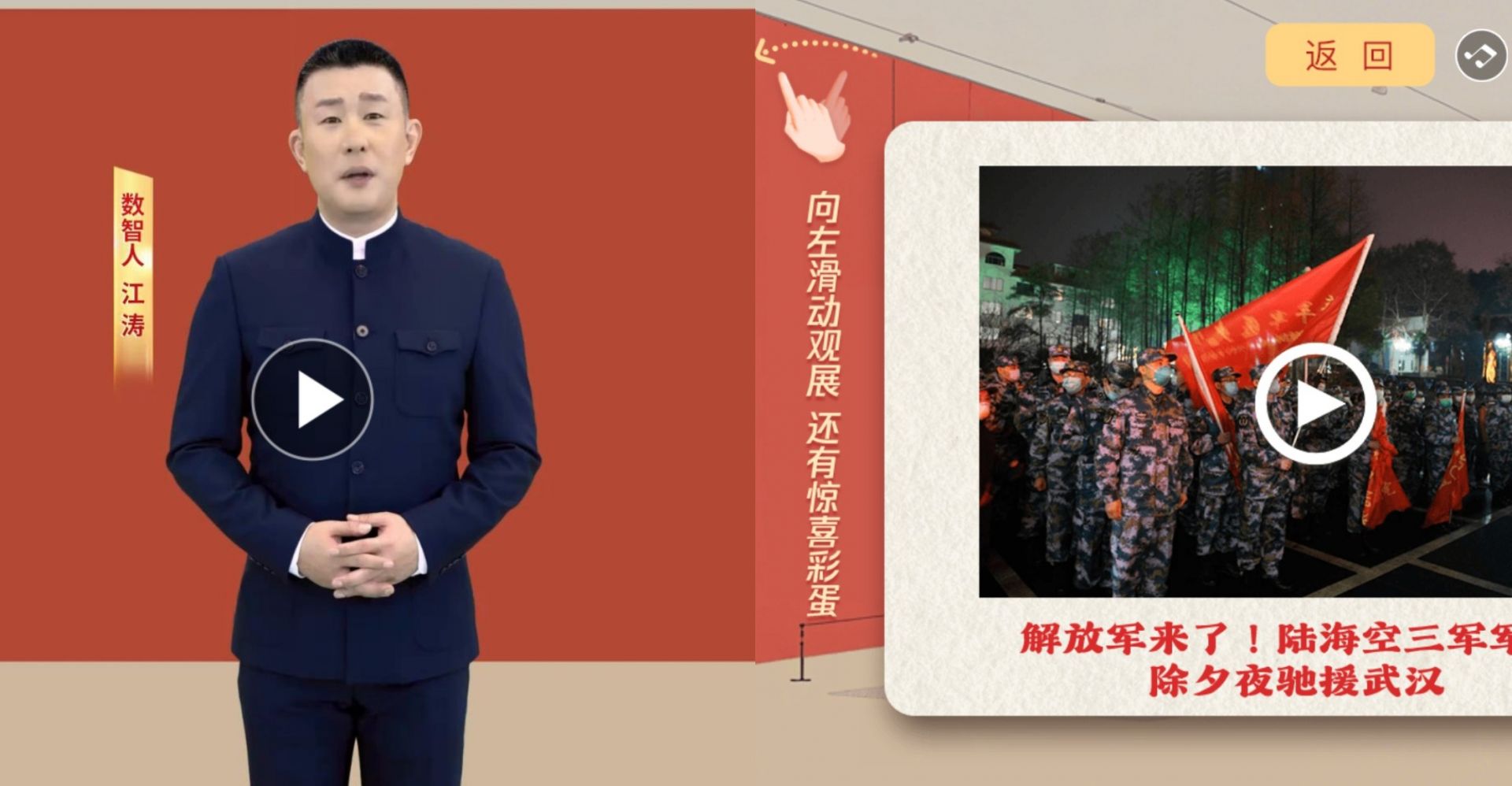 體驗館通過AIGC、Web3D場景交互等技術,把厚重的歷史書變成了可感可觸的“時空隧道”:黃麻起義的烽火硝煙、98抗洪的眾志成城、武漢抗疫的逆行背影……面對這些刻骨銘心的場景,用戶不再是旁觀者,而是能“走進”歷史現場、“觸摸”英雄溫度、“共情”信仰力量的親歷者。