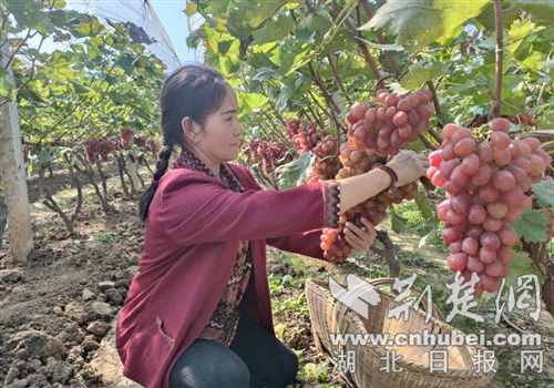 荊楚網(wǎng)(湖北日報(bào)網(wǎng))訊(通訊員 史金輝 鄭可)7月8日,京山市永興街道楊河村黨支部書記鄭永松來到村內(nèi)葡萄園一角,與農(nóng)戶一同查看新試種的葡萄品種生長情況。
