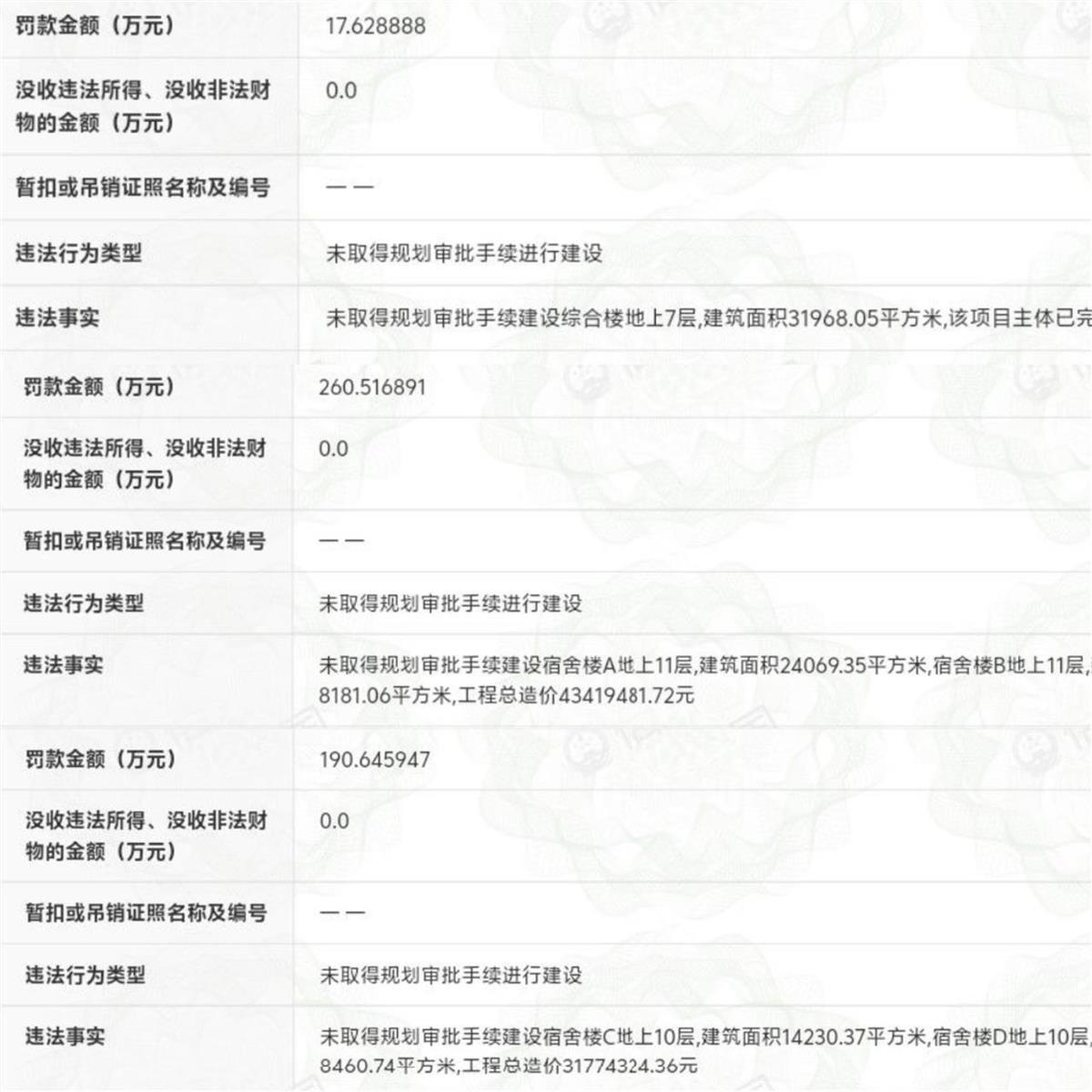 高校7棟樓規劃手續未批先建,被罰773萬余元