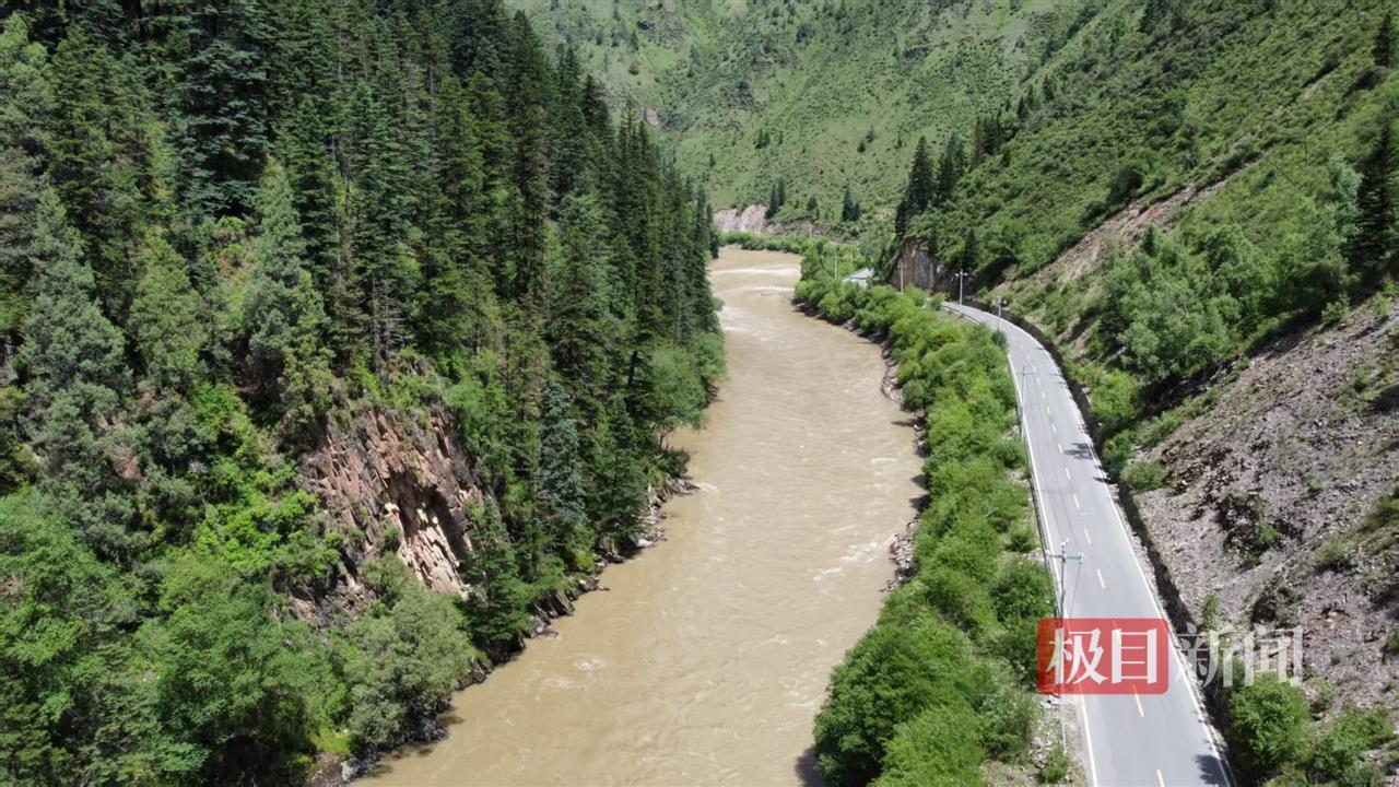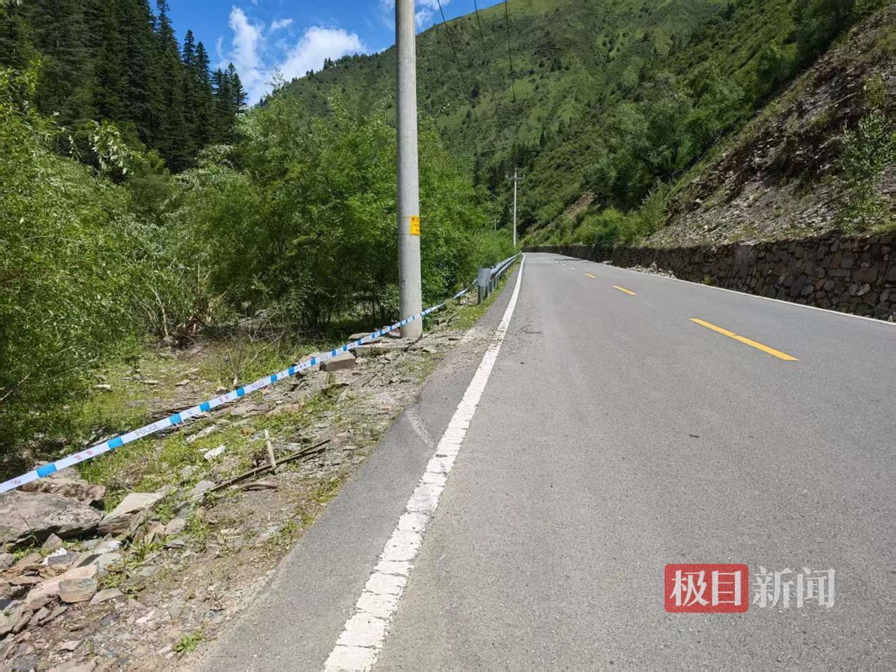 7月7日,極目新聞記者驅車前往事發現場,在阿壩州境內高速公路上,不斷有電子屏提醒:“州級地災橙色預警,請謹慎駕駛。”7月8日記者抵達位于阿壩縣的事發現場,這里海拔3000米左右,距離阿壩縣城尚有約100公里。事發道路依山傍河,兩側是高聳的山,道路沿著峽谷延伸。