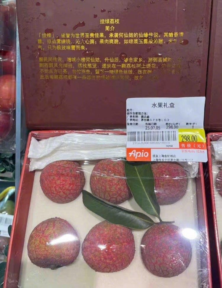 近日,有網友曬出照片顯示,上海某超市內6顆一盒的增城掛綠荔枝售價298元,此事引發熱議。