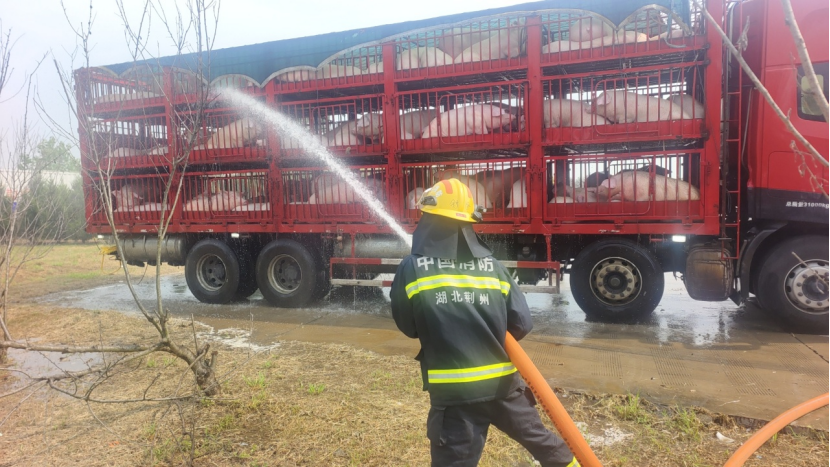 消防救援人員提醒廣大運輸從業人員,夏季高溫天氣運輸牲畜務必做好通風降溫措施,防止類似事件發生,確保人畜安全。