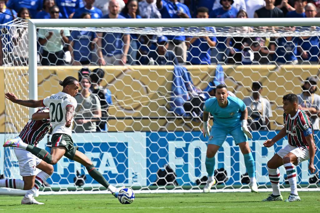7月8日,切爾西隊球員若昂·佩德羅(前左)射門得分。新華社記者 李睿 攝