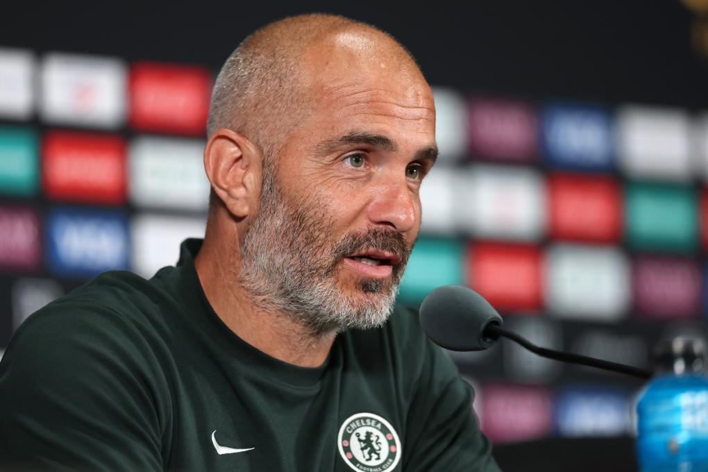 切爾西主教練馬雷斯卡在賽后新聞發布會上。圖片來自國際足聯官方圖集