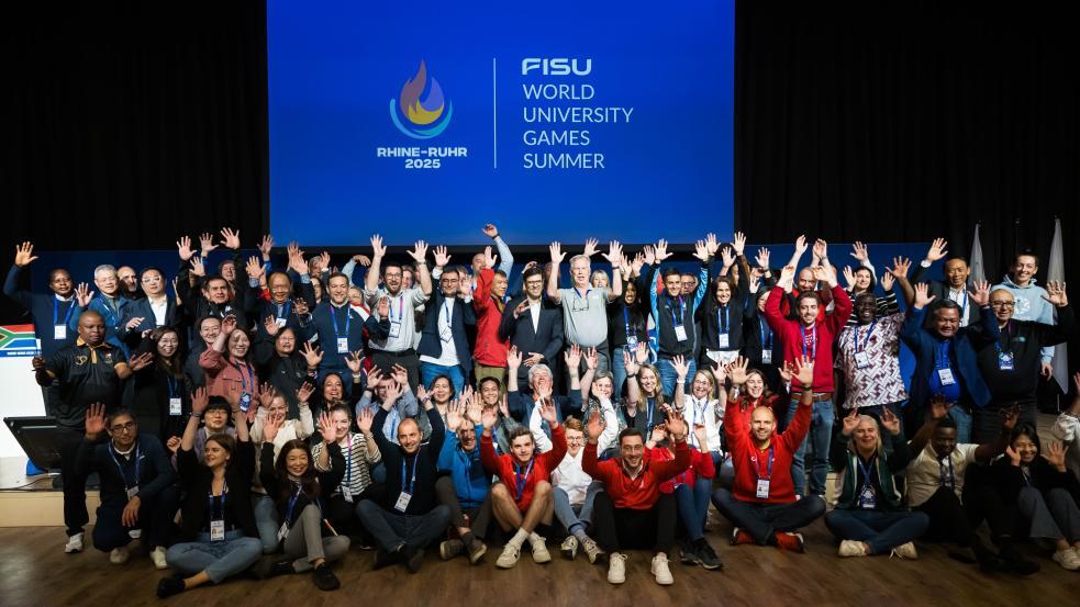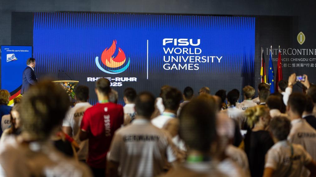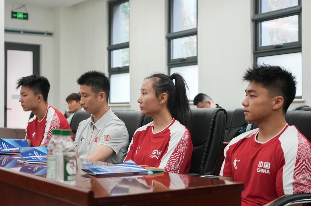 7月8日,中國大學生體育代表團運動員和教練員代表在主會場出征儀式上。新華社記者 胡星宇 攝