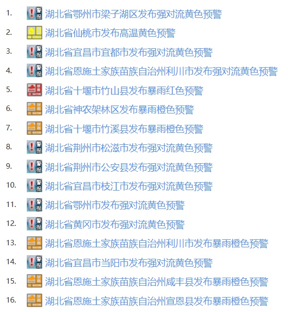 湖北發布風險提示:局地暴雨、單點大暴雨