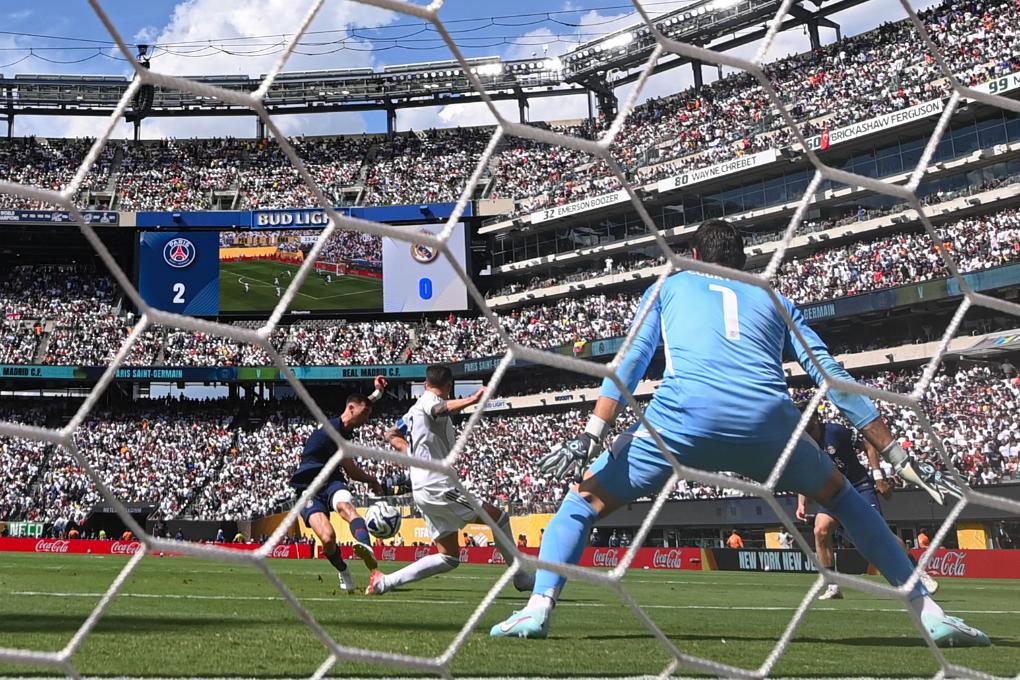 整場比賽,“大巴黎”占據(jù)絕對優(yōu)勢,控球率一度達(dá)到70%,18次射門,8次射正。若不是庫爾圖瓦發(fā)揮出色,皇馬恐將輸?shù)酶y看。