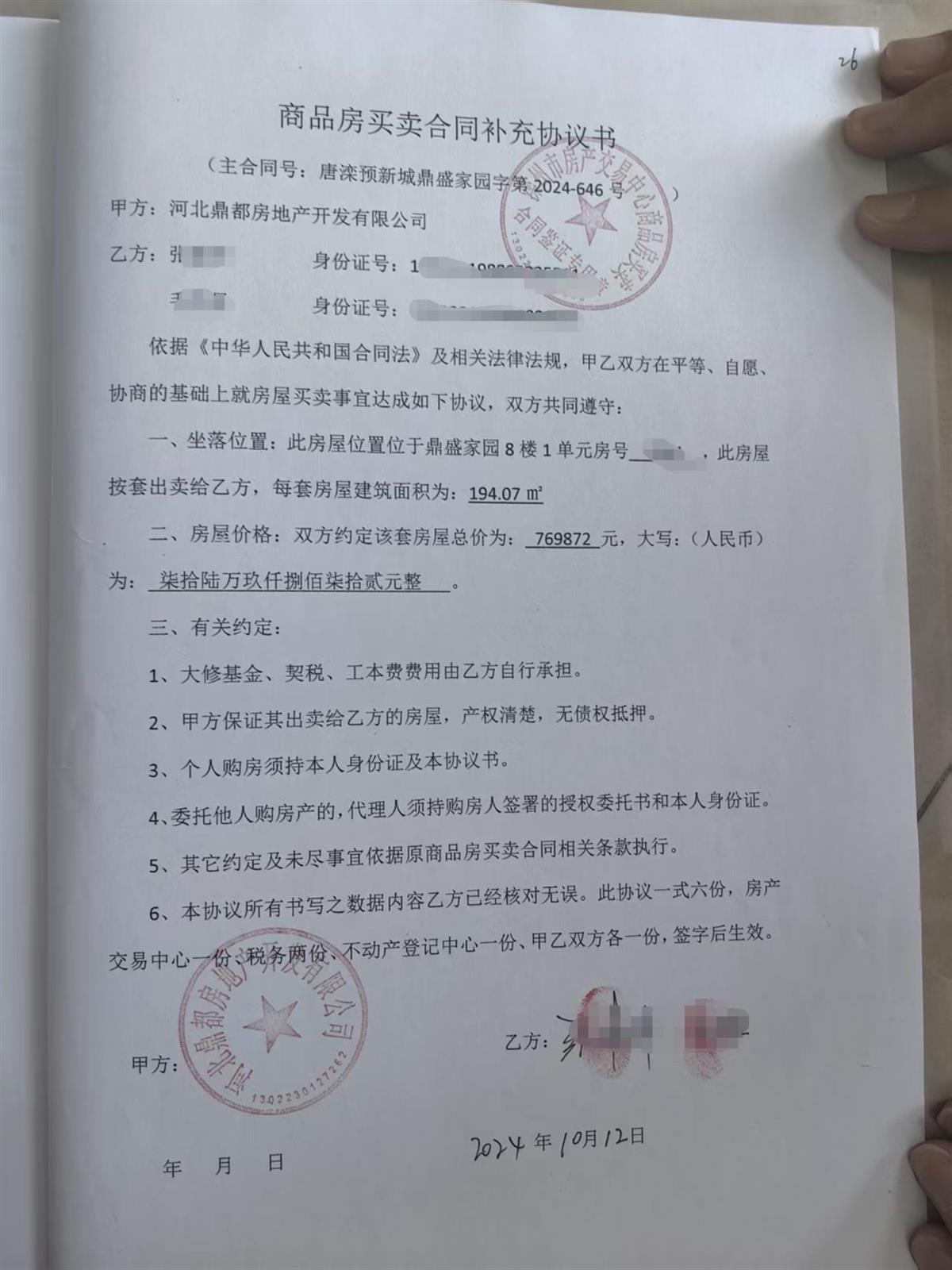 據(jù)楊先生介紹,法院早就判決河北鼎都房地產(chǎn)開發(fā)有限公司償還他100萬元借款及利息,但對(duì)方遲遲未履行生效判決。2023年8月,他向?yàn)粗菔腥嗣穹ㄔ荷暾?qǐng)財(cái)產(chǎn)保全,查封了該公司位于鼎盛家園小區(qū)的一套房產(chǎn)。最近房產(chǎn)準(zhǔn)備拍賣時(shí)卻發(fā)現(xiàn),去年10月,開發(fā)商偷偷地將這套房以77萬元左右賣給了他人,還在灤州市房地產(chǎn)交易中心簽訂了《商品房買賣合同》和《商品房買賣合同補(bǔ)充協(xié)議書》。