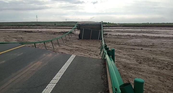 7月10日,多個網絡視頻顯示,內蒙古巴彥淖爾市烏拉特中旗境內一橋梁路面塌陷,多名網友表示有人落水失蹤,暫未找到。