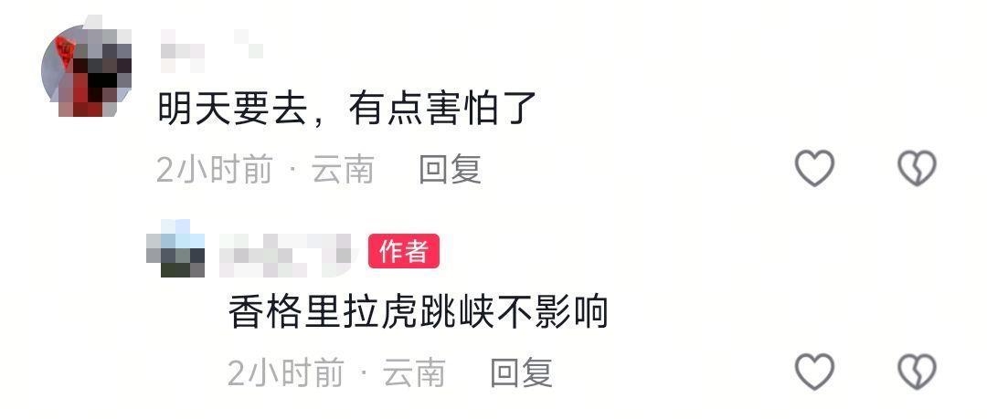 該視頻引發部分游客擔憂,有網友留言“明天要去有點害怕了”。視頻發布者隨后在評論區解釋稱:“香格里拉虎跳峽不受影響”。