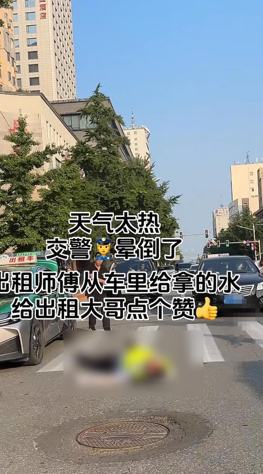 網友拍攝的視頻顯示,7月9日,一名穿著工作服的交警暈倒在街道的十字路口,一旁等待綠燈的私家車和出租車司機下車查看情況,該出租車司機隨即從后備箱拿出一瓶水為交警降溫。記者注意到,該路口位于鬧市區,事發時有不少市民和車輛經過。