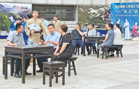 “喲,這位爺,您里邊請!”昨天下午,北京北站下沉廣場上,一位位身著戲服的曲劇演員登場,邀請過往行人移步至一旁的“茶館”品茶。旅客被演員帶入沉浸式表演中,現場不時發出笑聲和喝彩聲。原來這是北京市重點站區管理委員會北站辦與北京市曲劇團聯合策劃的“黨建引領·京韻暢行”快閃活動。此次快閃活動通過沉浸式表演,將北京曲劇《茶館》片段融入旅客和市民的出行場景。