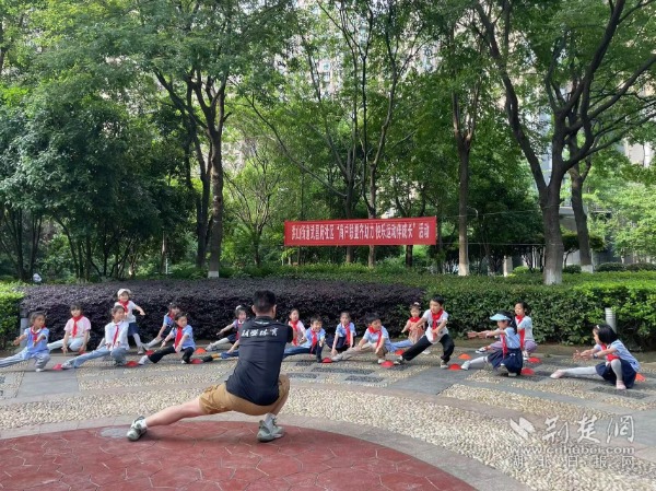 武昌府社區“托管周周幫”孩子們跟著“商戶聯盟”機構老師鍛煉體能。 通訊員供圖