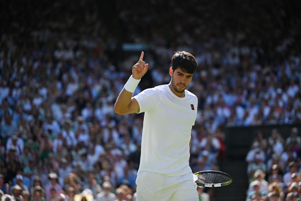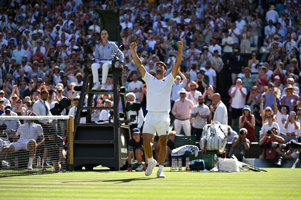 7月11日,阿爾卡拉斯在比賽獲勝后慶祝。