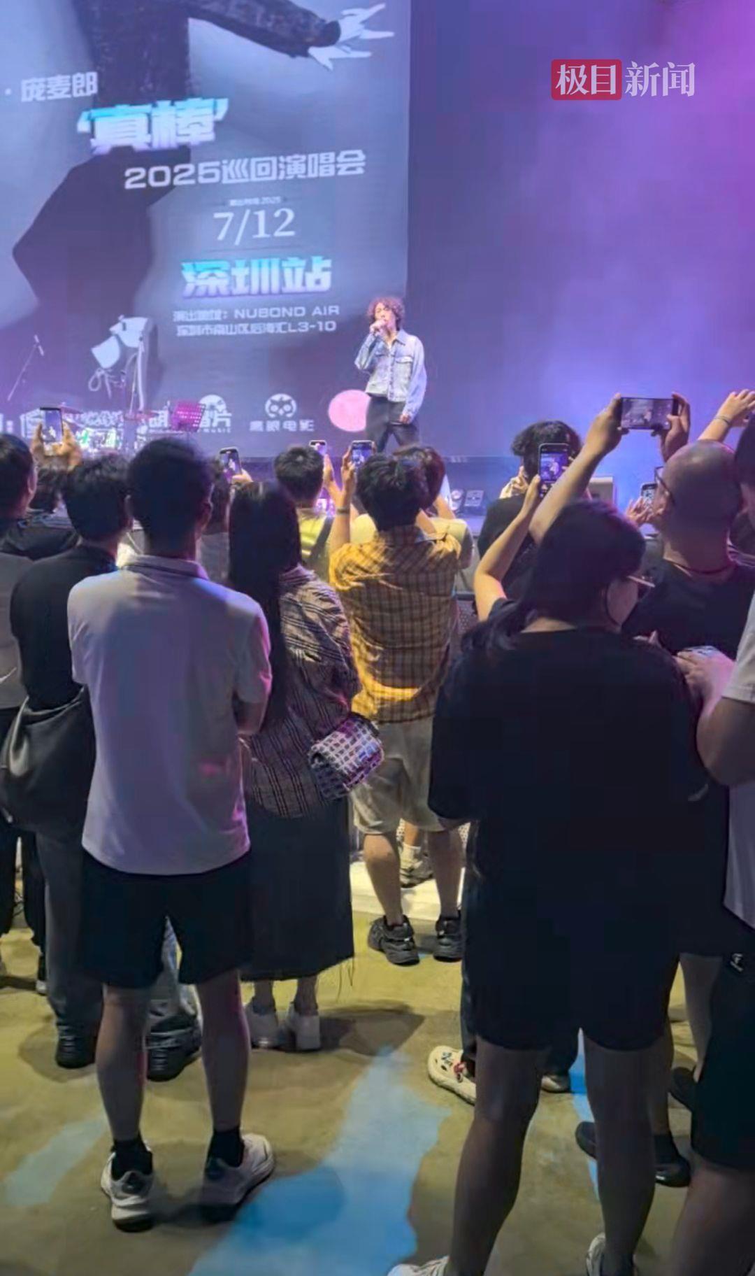 從現場的視頻可以看到,龐麥郎在深圳演唱會上唱了《我的父親是瓦匠》《我的滑板鞋》《真棒》等歌曲。不少粉絲一直舉著手機一邊拍視頻一邊聽他唱歌。