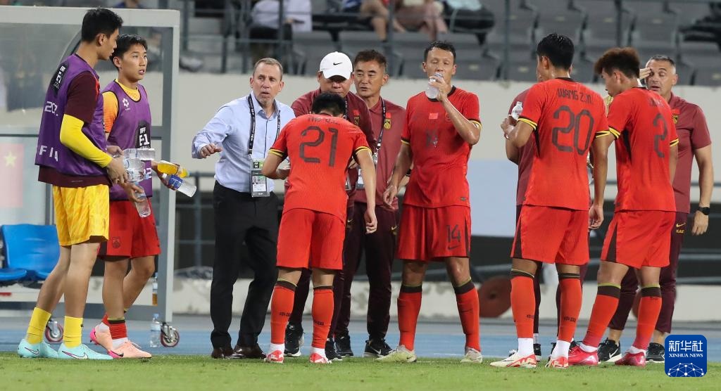 7月12日,中國隊代理主教練德揚·久爾杰維奇(左三)在場邊指導。