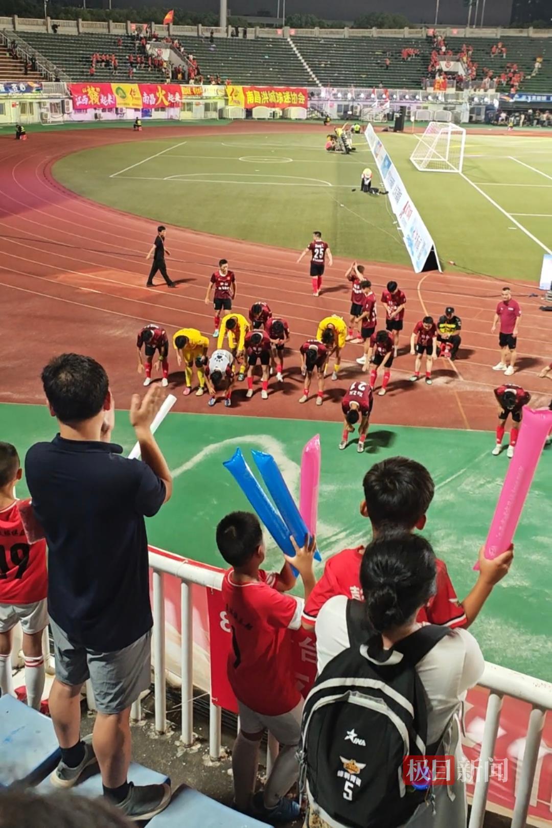 南昌隊隊員退場的時候,有球迷沖到前排大喊“第二場加油!”周圍球迷也紛紛起身喊“加油”,南昌隊隊員向觀眾席球迷鞠躬致謝。