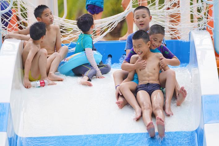 7月12日下午,武漢市漢陽區月湖天然水上樂園內,近百名中小學生在淺水區嬉戲。當天,“汗動青春,營在江城”2025年“奔跑吧·少年”夏令營免費游泳服務活動啟動。截至7月31日,武漢市內40家指定游泳場館對武漢中小學生分時段免費開放。場館名單及活動詳情可掃碼了解。楚天都市報極目新聞記者宋枕濤攝影報道