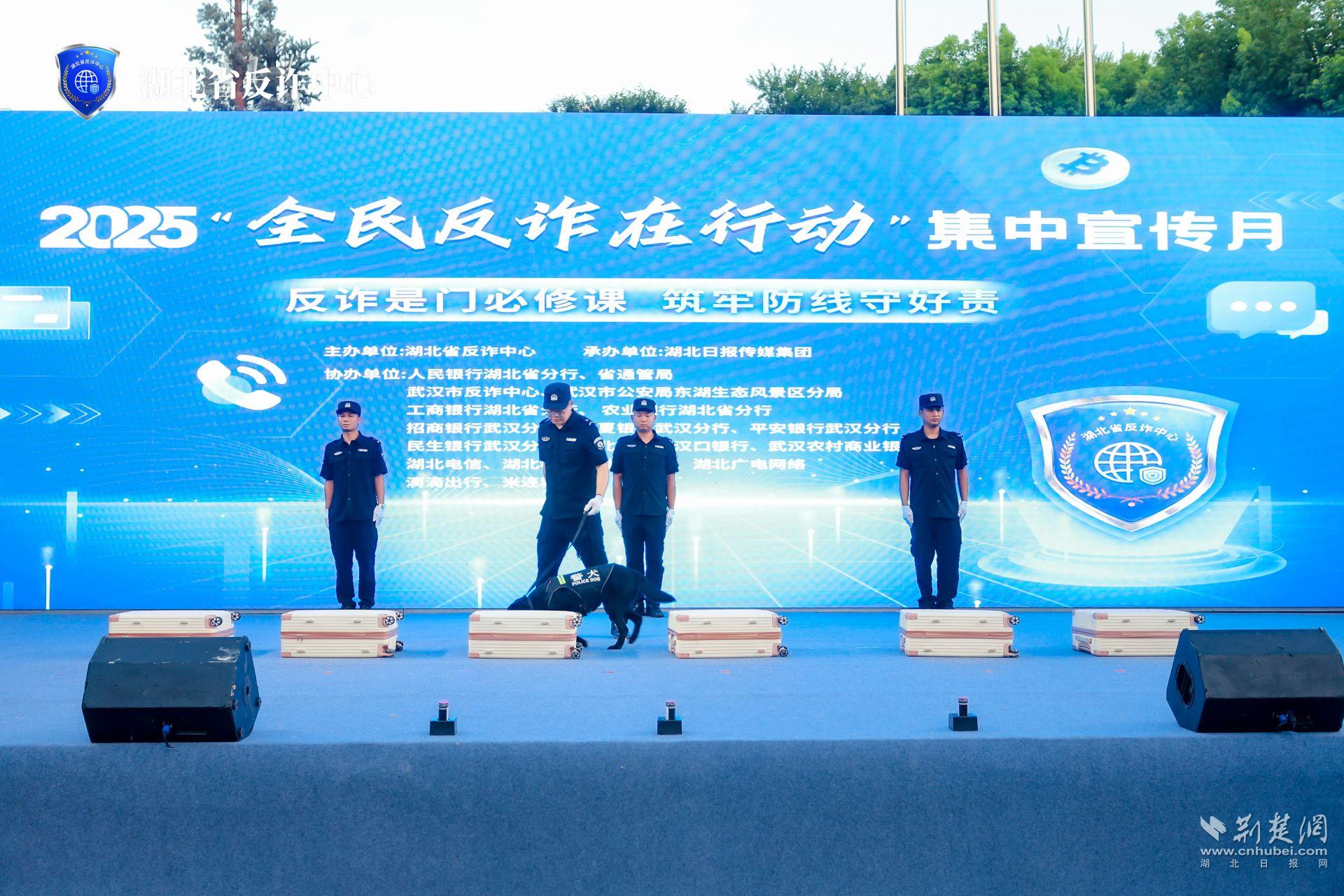 武漢市公安局刑偵支隊表演的警犬搜查節(jié)目,引來圍觀市民陣陣掌聲……2025年湖北省全民反詐宣傳月嘉年華活動就此拉開序幕。
