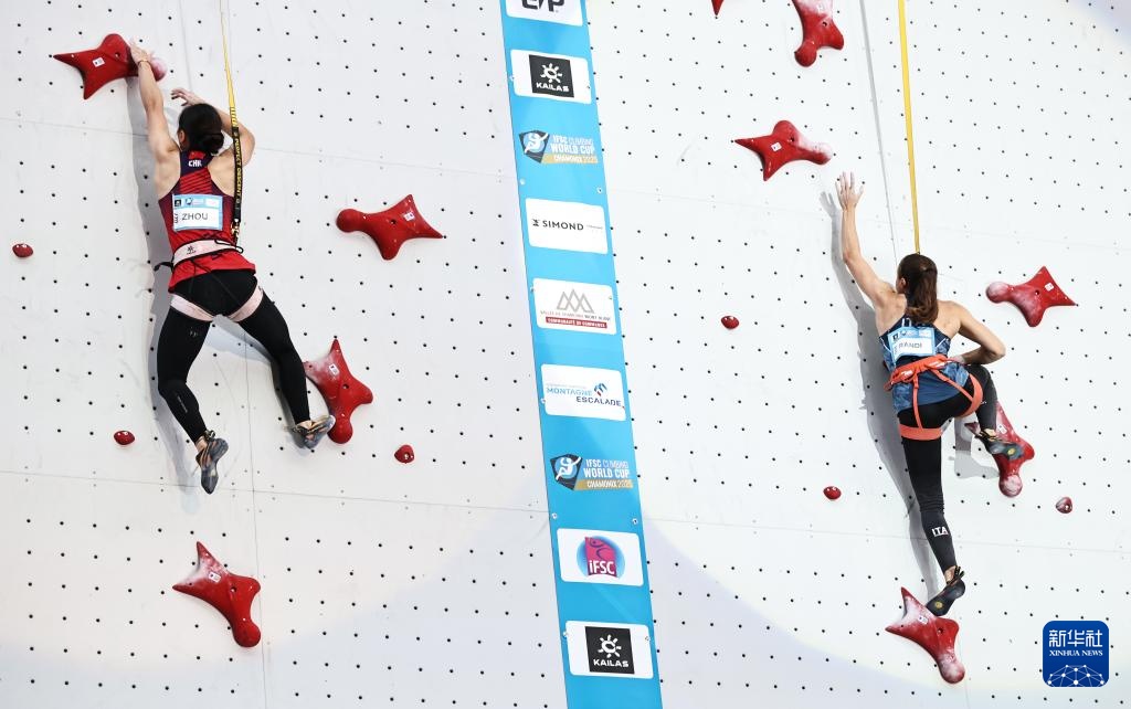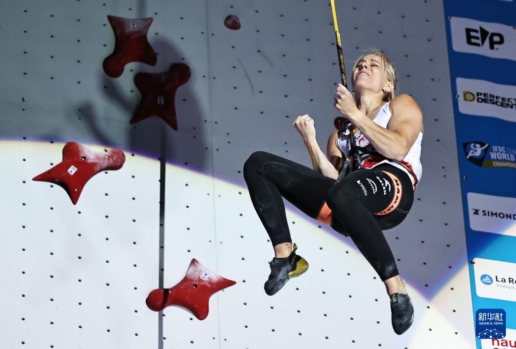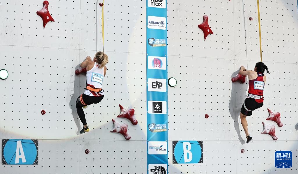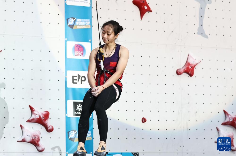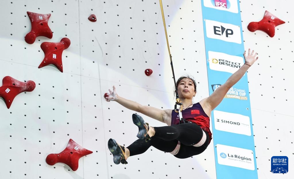 當(dāng)日,在2025攀巖世界杯霞慕尼站女子速度決賽中,波蘭選手米羅斯瓦夫奪冠。