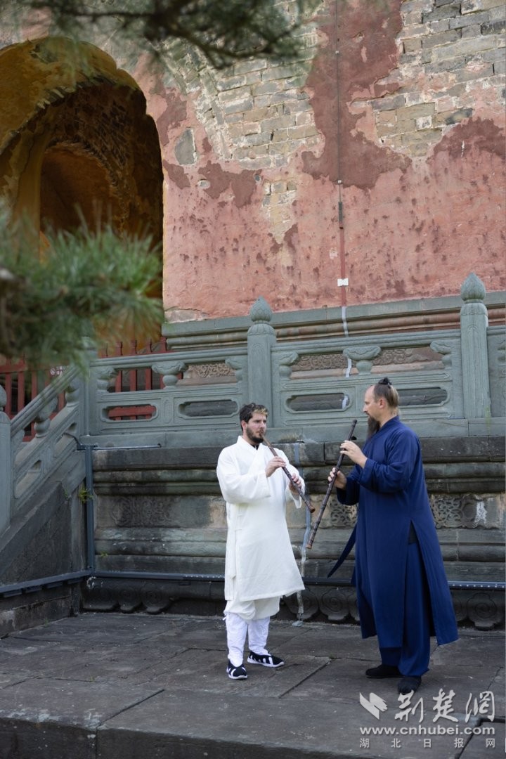 6月27日,武當山山腳,壯麗宏偉的玉虛宮宮殿處,美國博主保保熊遇到了同樣來自美國,但已在武當山學習生活了十余年的“洋教練”杰克。