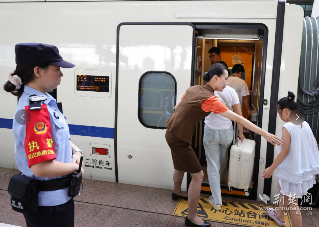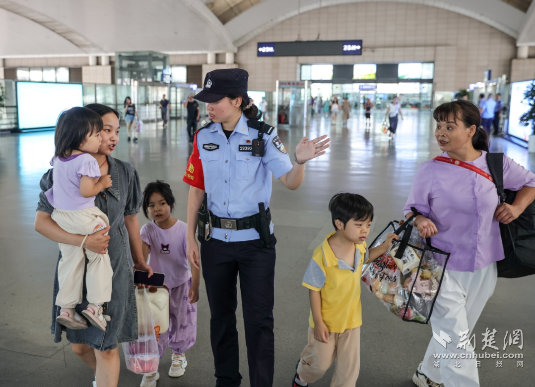 荊楚網(wǎng)(湖北日報網(wǎng))訊(通訊員陳誠 楊夢君)七月的武漢,驕陽似火,熱浪如潮。武漢鐵路公安民警和鐵路工作人員堅守武昌、武漢和漢口站運輸一線,從引導旅客有序上下車,到檢查站臺安全設施,為車站安全高效運轉(zhuǎn)保駕護航。“越是天熱,旅客越容易急躁,我們多一分耐心,大家的出行就多一分順暢。”武漢鐵路公安處武昌站派出所所長陳鵬說。