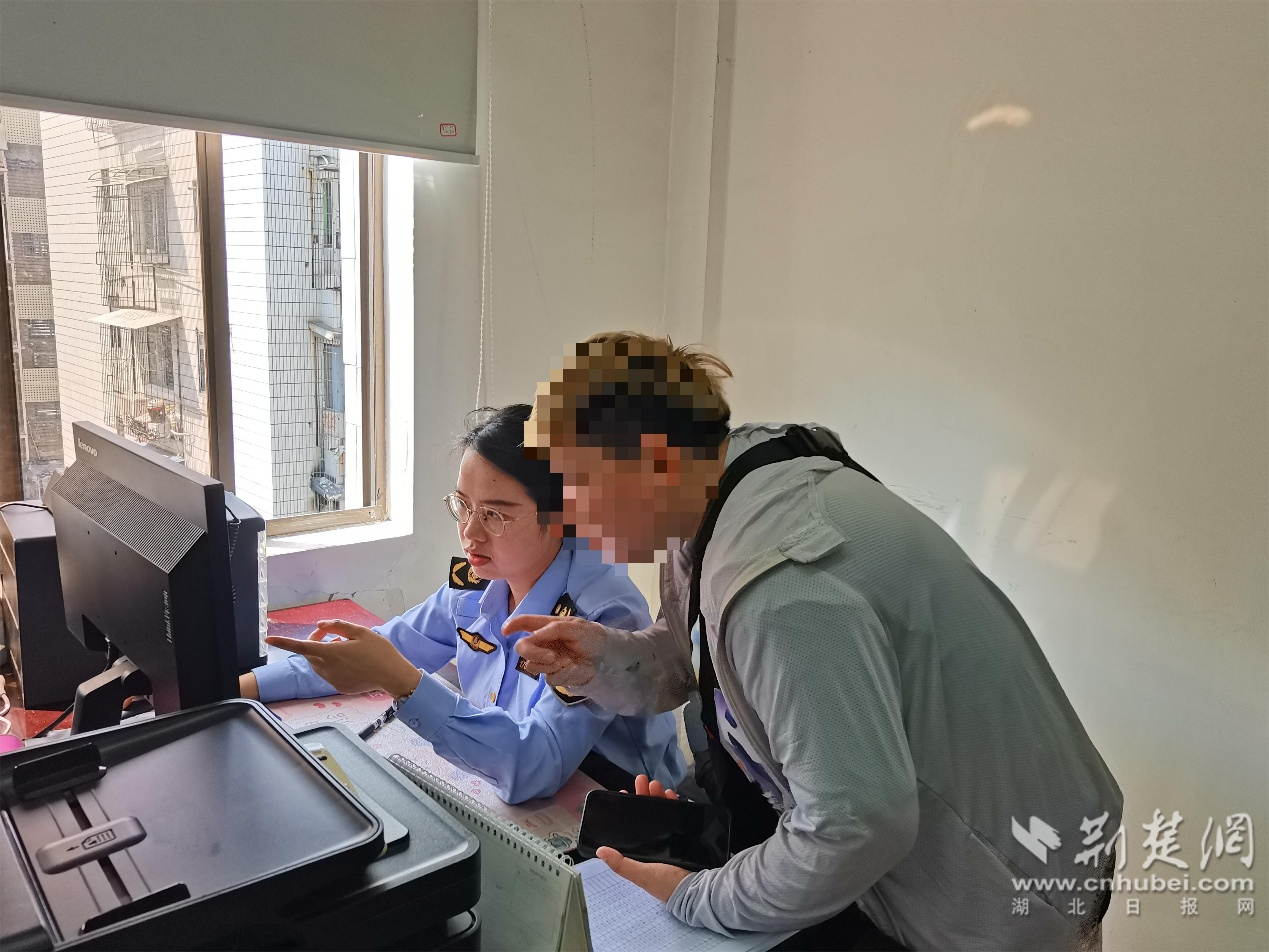 乘客乘坐出租車遺失提包后,來到宜昌東站執法崗亭求助