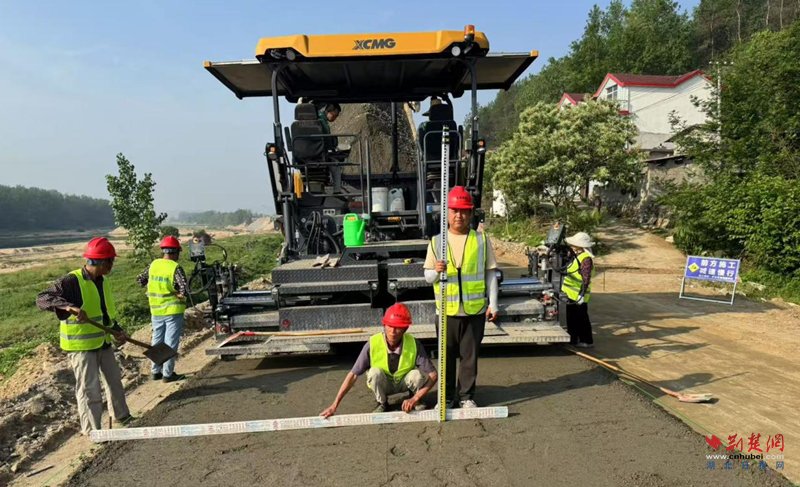 在羅田北部,6月8日,平湖鄉(xiāng)東沖畈至秋千場(chǎng)公路改建工程路面施工隊(duì)伍進(jìn)場(chǎng)。180天工期完成3.46公里路面建設(shè),截至當(dāng)前,路面建設(shè)已完成1.5公里,沿線群眾為“易通速度”豎起了大拇指。