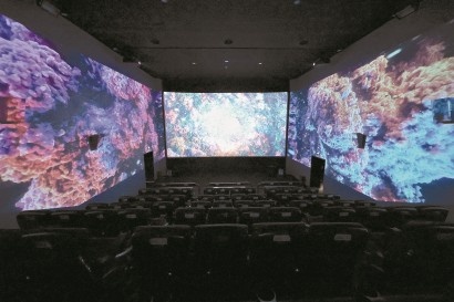SCREENX影廳的“三面屏”不是最新出現的,該技術與4DX都來自韓國。劉湘文記得,影院早在2018年就引入ULTRA 4DX技術,當時叫“4DXSCREEN融和廳”,同年上映的《神奇動物:格林德沃之罪》就用到三面屏。不過,并不是每部電影都會特別制作三面屏內容,由于定制片源較少,關注度有限。