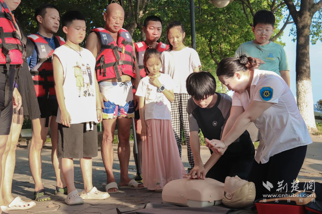 荊州水上應急救援隊隊員還為市民講解了水下自救方法。