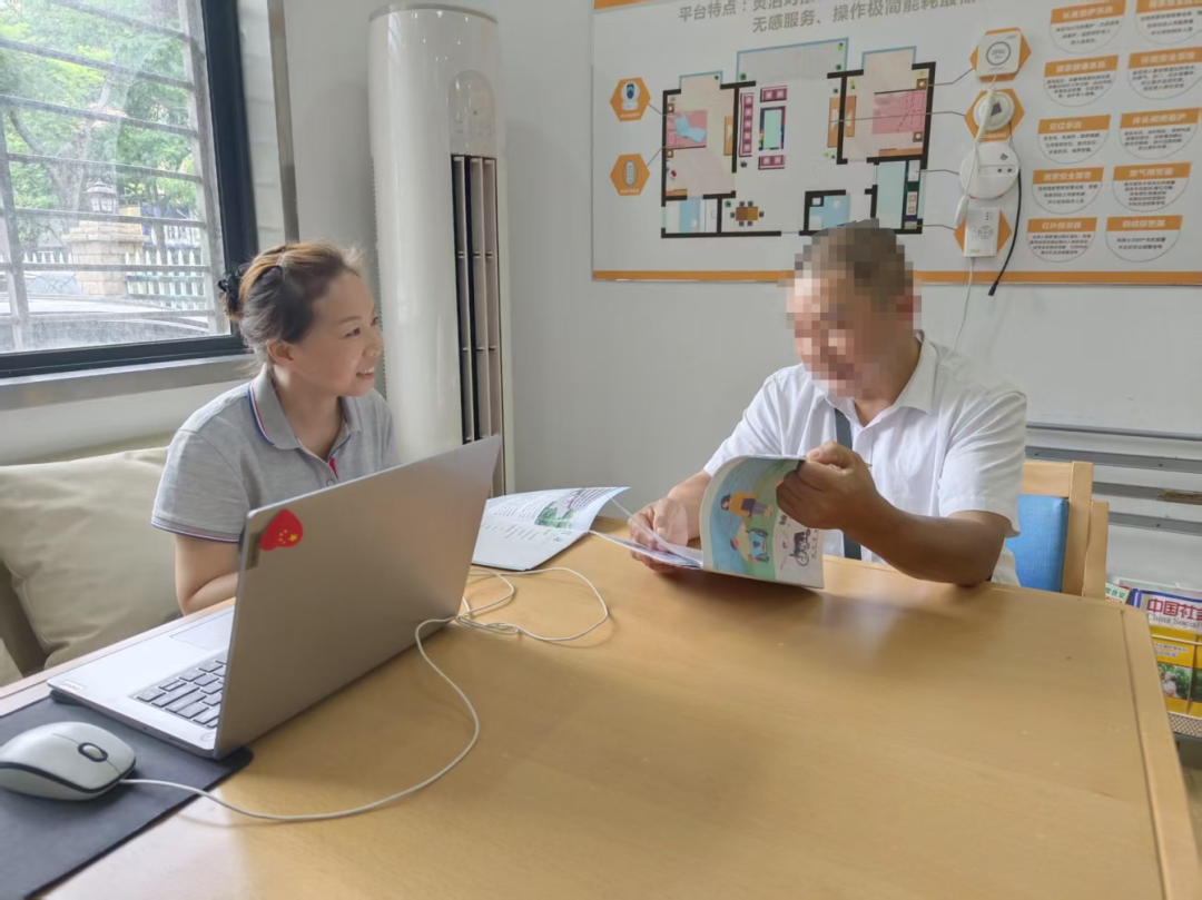 在青山社區(qū)“愛心輔具驛站”,工作人員為市民解答問題。胡玉梅 攝