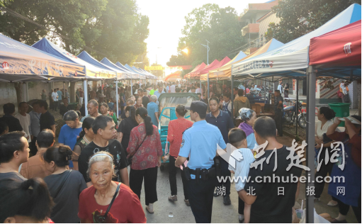荊楚網(湖北日報網)訊(通訊員 姚薇 劉璠)7月13日,沙洋縣后港鎮“蛟尾煙火場·拾味舊時光”趕集活動現場煙火升騰,人氣十足。后港水陸派出所民警輔警深入熙攘人群,用親切方言開展反詐宣傳。
